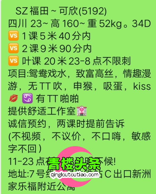 妹子在宝安区的,加了qq发个位置,然后去到来接你,有制服,丝袜,高跟鞋,质量不错,身材比较好,我开车过 ...
